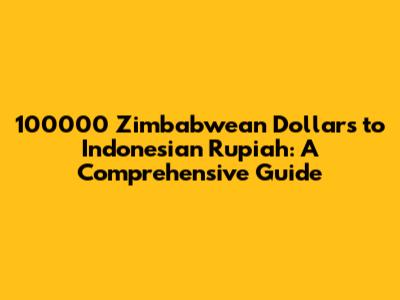 Hey guys! Ever wondered how much 100000 Zimbabwean Dollars (ZWD) is worth in Indonesian Rupiah (IDR)? Well, you've come to the right place! In this article, we'll break down everything you need to know about this currency conversion. We'll dive into the factors influencing the exchange rate, historical trends, and how to get the best deals when converting your money. So, buckle up and let's get started!