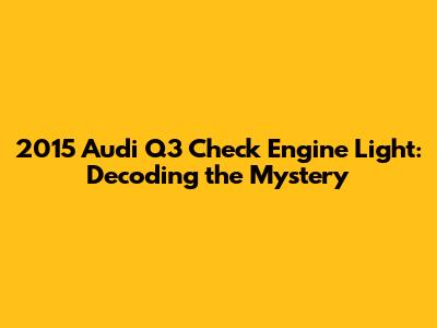 Alright guys, let's talk about something that can make any Audi Q3 owner's heart skip a beat: the dreaded check engine light. If you're cruising around in your 2015 Audi Q3 and that little orange or yellow icon pops up on your dashboard, it's time to pay attention. Don't freak out, though! The check engine light can illuminate for a bunch of different reasons, ranging from minor issues to more serious problems. The good news is, understanding what might be causing it and knowing how to respond can save you a lot of stress and potentially some serious cash. In this article, we'll dive deep into the world of the 2015 Audi Q3 check engine light, exploring the common culprits, what you should do when it appears, and how to keep your Q3 running smoothly. Getting your Audi Q3 checked is essential to ensure it runs properly and avoids further damage. The check engine light, also known as the malfunction indicator lamp (MIL), is a crucial warning system in your car. It alerts you to potential problems within the engine or emissions system. Ignoring it can lead to more significant and expensive repairs down the road. It's like a little guardian angel for your car, trying to tell you something's not quite right. Ignoring that light can be a costly mistake, so let's get you informed!