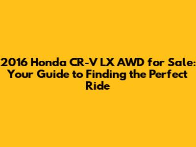 The 2016 Honda CR-V LX AWD is a fantastic choice for anyone looking for a reliable, fuel-efficient, and spacious SUV. By doing your research, inspecting the vehicle carefully, and negotiating effectively, you can find a great CR-V at a great price. Happy car hunting, and drive safely!