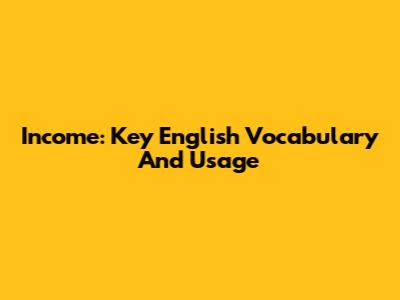 Income: Key English Vocabulary And Usage