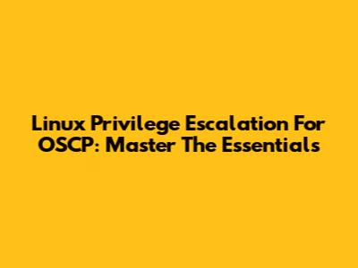 Linux Privilege Escalation For OSCP: Master The Essentials