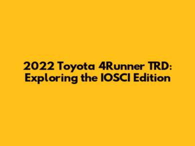 - It's possible that the term "IOSCI edition" refers to a 4Runner TRD that has been customized with specific aftermarket parts or accessories. These modifications could be aimed at improving off-road performance, adding unique styling elements, or enhancing the vehicle's technology features. For example, the owner might have installed a lift kit, upgraded wheels and tires, a custom exhaust system, or a high-end audio system.