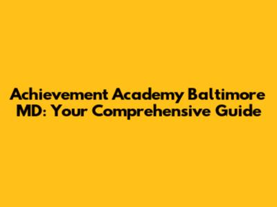 Hey everyone! Today, we're diving deep into Achievement Academy in Baltimore, MD. If you're looking for a top-notch educational institution in Baltimore, you're in the right place. This guide will walk you through everything you need to know, from the programs offered to what makes this academy special. Let's get started, shall we?
