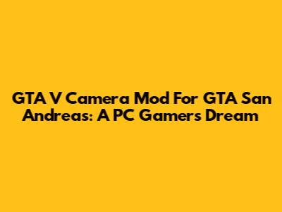GTA V Camera Mod For GTA San Andreas: A PC Gamer's Dream