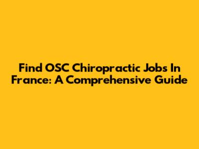 Find OSC Chiropractic Jobs In France: A Comprehensive Guide