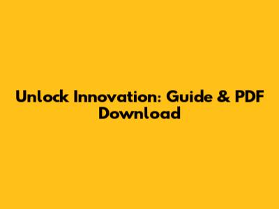 Unlock Innovation: Guide & PDF Download