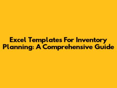 Excel Templates For Inventory Planning: A Comprehensive Guide