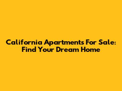 California Apartments For Sale: Find Your Dream Home