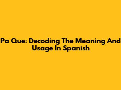 Pa Que: Decoding The Meaning And Usage In Spanish