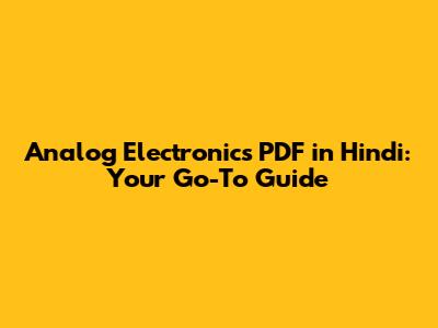 - "Analog Electronics Textbook PDF Hindi" If you're looking for a comprehensive textbook, this search is perfect.