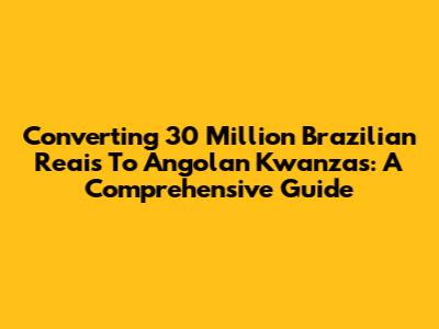Converting 30 Million Brazilian Reais To Angolan Kwanzas: A Comprehensive Guide