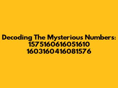 Decoding The Mysterious Numbers: 1575160616051610 1603160416081576