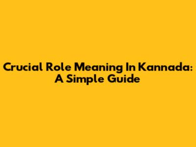 Crucial Role Meaning In Kannada: A Simple Guide