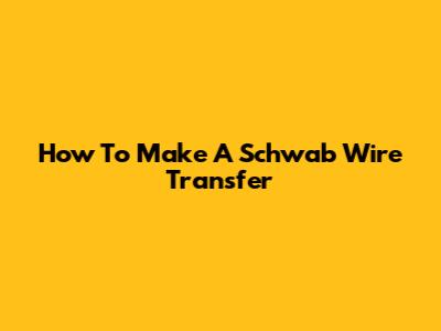 How To Make A Schwab Wire Transfer