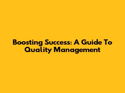 Boosting Success: A Guide To Quality Management