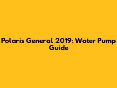 Polaris General 2019: Water Pump Guide