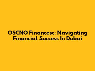 OSCNO Financesc: Navigating Financial Success In Dubai