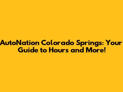 Hey guys! Are you trying to figure out when you can swing by AutoNation in Colorado Springs? You've landed in the right spot! This guide will give you the lowdown on their hours, what you can expect, and everything else you might need to know. Let's dive in!