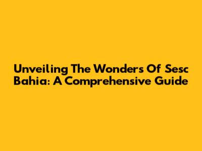 Unveiling The Wonders Of Sesc Bahia: A Comprehensive Guide