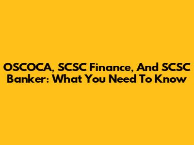 OSCOCA, SCSC Finance, And SCSC Banker: What You Need To Know