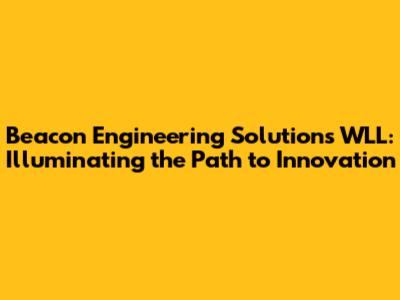 In conclusion, Beacon Engineering Solutions WLL exemplifies what it means to be a leader in the engineering industry. Their dedication to providing innovative, sustainable, and client-focused solutions sets them apart. By embracing new technologies, fostering a culture of collaboration, and prioritizing ethical practices, they are not only meeting the needs of today but also shaping the future of engineering.