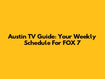 Austin TV Guide: Your Weekly Schedule For FOX 7