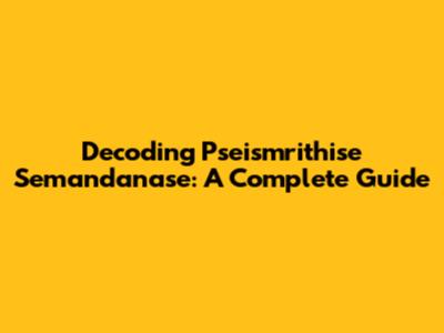 Decoding Pseismrithise Semandanase: A Complete Guide