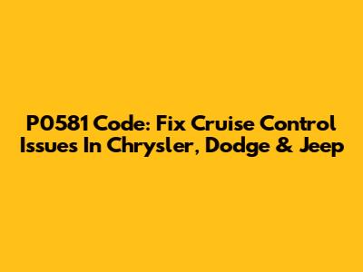 P0581 Code: Fix Cruise Control Issues In Chrysler, Dodge & Jeep