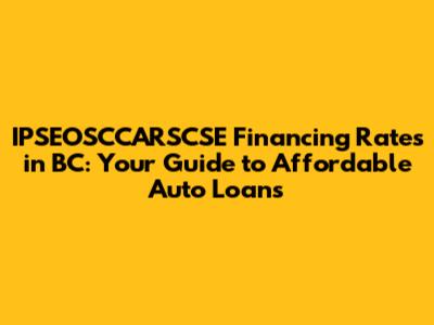 Hey guys! Finding the best financing rates for your car in British Columbia can feel like navigating a maze, especially when you're dealing with acronyms like IPSEOSCCARSCSE. Let's break it down and make sure you get the best deal possible. In this article, we will delve into the intricacies of securing competitive auto loan rates, specifically focusing on the factors that influence IPSEOSCCARSCSE financing in British Columbia. Whether you're a first-time car buyer or looking to upgrade your current vehicle, understanding the landscape of auto financing is crucial. We'll explore the various lenders, the types of loans available, and tips to ensure you drive away with a payment plan that fits your budget. Our goal is to equip you with the knowledge to make informed decisions and confidently navigate the car financing process. So, buckle up as we embark on this journey to uncover the secrets of affordable auto loans. Always remember, the more you know, the better prepared you'll be to negotiate and secure favorable terms. Let’s dive into understanding what affects those rates and how you can snag the best deal.