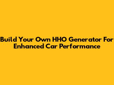 Build Your Own HHO Generator For Enhanced Car Performance