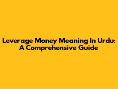 Leverage Money Meaning In Urdu: A Comprehensive Guide