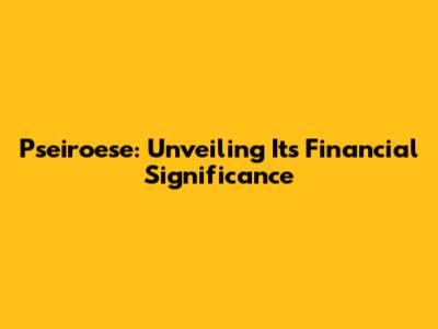 Pseiroese: Unveiling Its Financial Significance