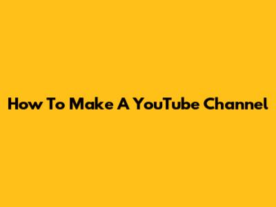 How To Make A YouTube Channel