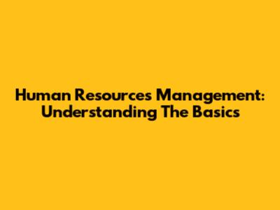 Human Resources Management: Understanding The Basics