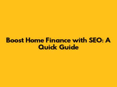 Key SEO Strategies for Home Finance Success