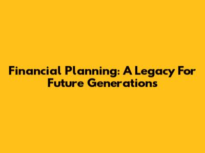 Financial Planning: A Legacy For Future Generations