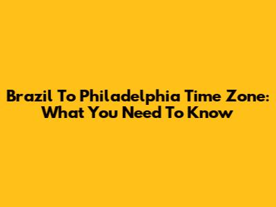 Brazil To Philadelphia Time Zone: What You Need To Know