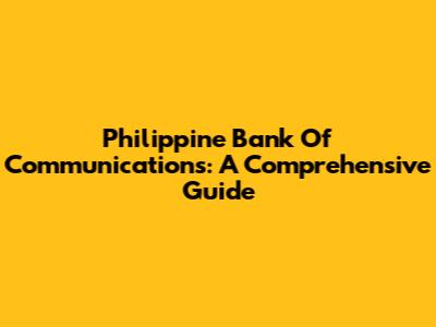 Philippine Bank Of Communications: A Comprehensive Guide