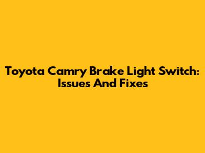 Toyota Camry Brake Light Switch: Issues And Fixes