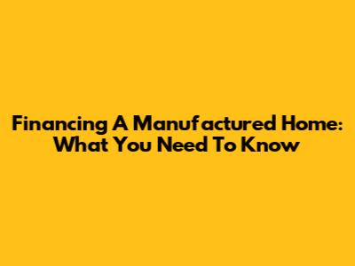 Financing A Manufactured Home: What You Need To Know