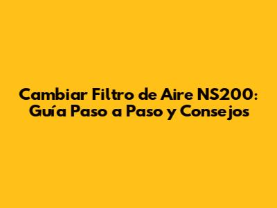 Paso a Paso: Cómo Cambiar el Filtro de Aire de tu NS200