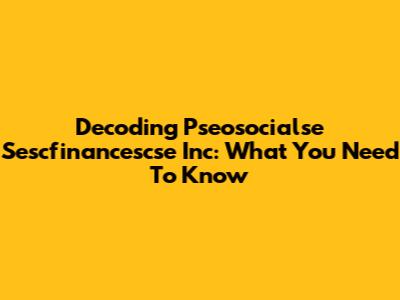 Decoding Pseosocialse Sescfinancescse Inc: What You Need To Know