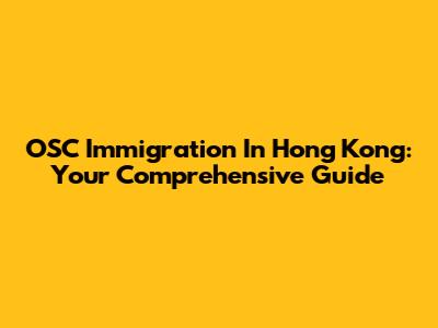 OSC Immigration In Hong Kong: Your Comprehensive Guide