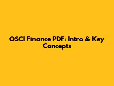 OSCI Finance PDF: Intro & Key Concepts