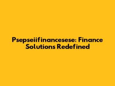 Psepseiifinancesese: Finance Solutions Redefined