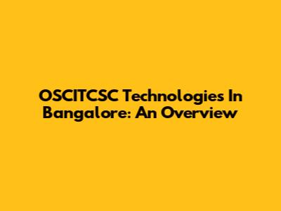 OSCITCSC Technologies In Bangalore: An Overview
