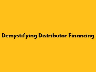 Demystifying Distributor Financing