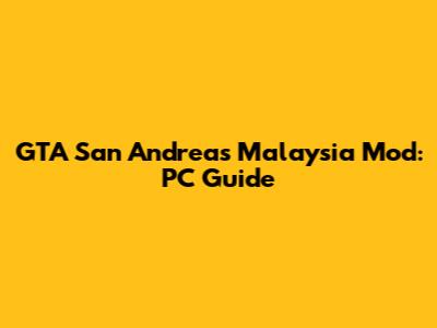 GTA San Andreas Malaysia Mod: PC Guide