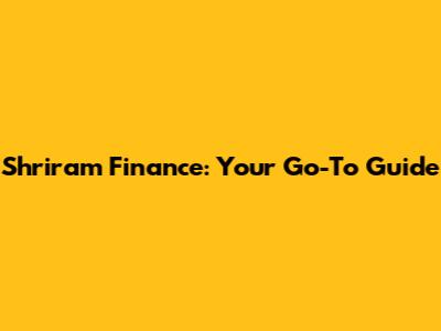 Shriram Finance: Your Go-To Guide