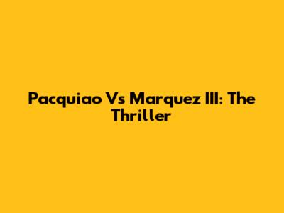 Pacquiao Vs Marquez III: The Thriller